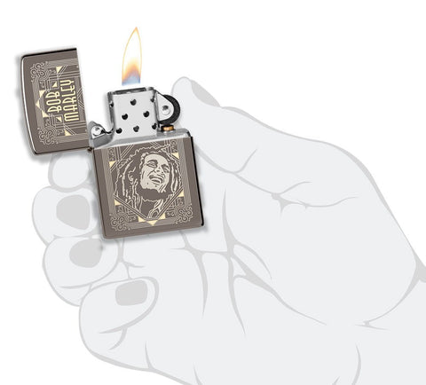 Fans of Bob Marley will be thrilled to see the man himself immortalized on this Black Ice® lighter. Our Laser Two Tone process is used to create depth, texture and impeccable detail. Comes packaged in a gift box. For optimal performance, fill with Zippo lighter fuel.